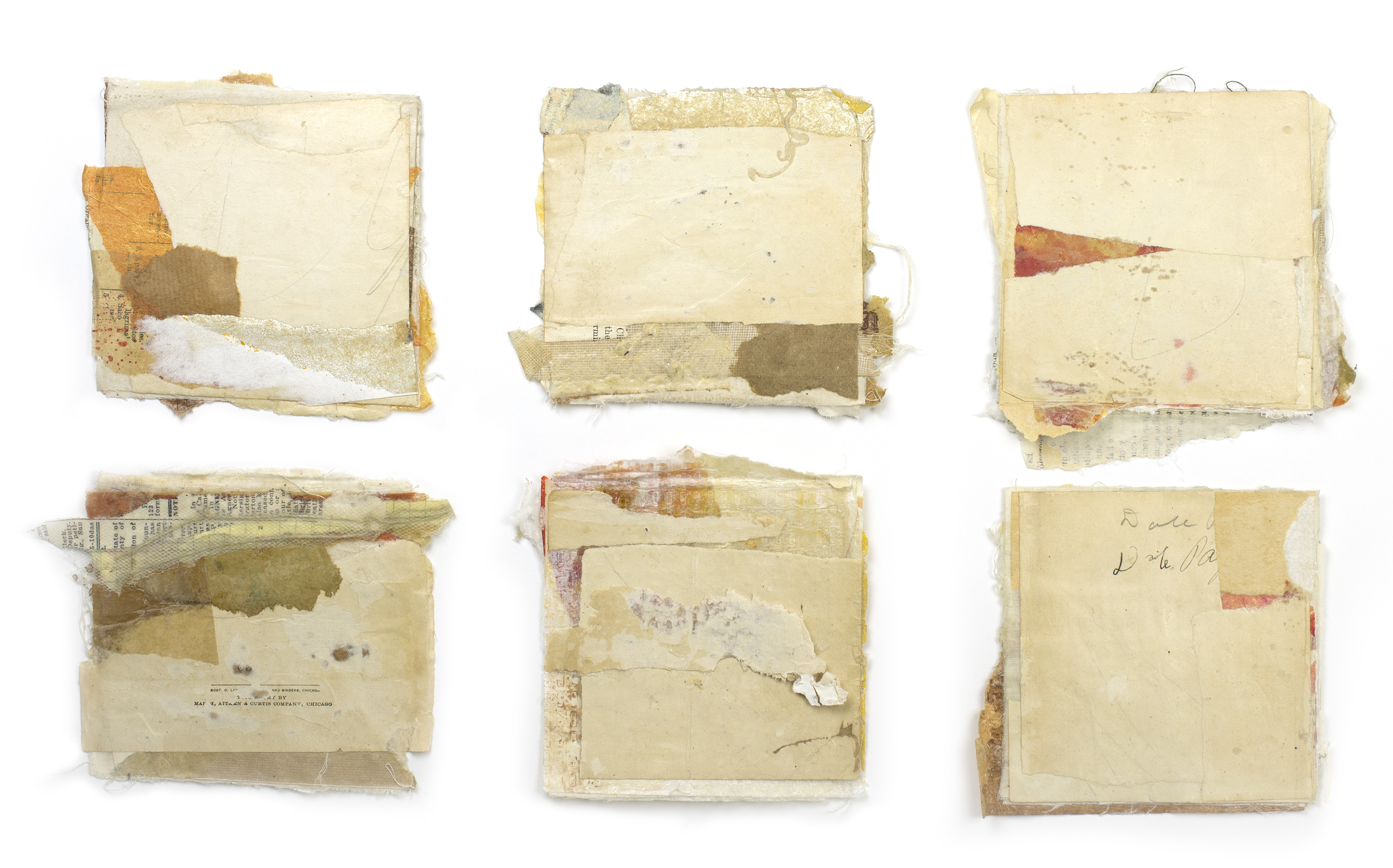 My mixed-media pieces are created from flyers stapled to telephone poles (lost dog, garage sale, etc.). After years of weather, these community billboards become a rusting graveyard of events past. I remove the paper scraps and re-assemble them into graphic structures inlaid with chaotic bits of image, typography, and rust.